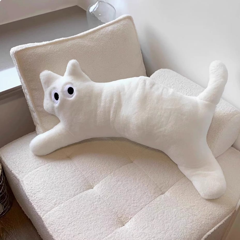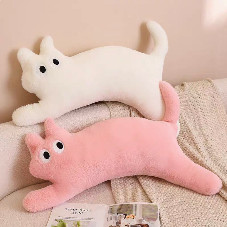 ○まるで部屋の中をのびのび駆け回る猫たちのような、ユニークなロングシルエットのクッション。抱きしめたくなる柔らかさで、ソファやベッドに置けばそのまま抱き枕に。腰当てやリラックス用としても、読書や映画の時間にぴったりです。窓辺や棚に飾れば、遊び心のあるインテリアアクセントとして空間を彩ります。 ○One size(約100cm) ○素材:表面:毛織 中材:PP綿 ○カラー:ホワイト/ブラック/ピンク/イエロー ○注意事項: ・手作業での測定のため、2~3cmほどの誤差が生じる場合があります ・素材特有の匂いが残っている場合がありますが、風通しの良い場所でしばらく置くと消えます ・洗濯は手洗いまたはネットに入れて弱洗濯を推奨します(漂白不可) ・火気の近くでのご使用はお避けください