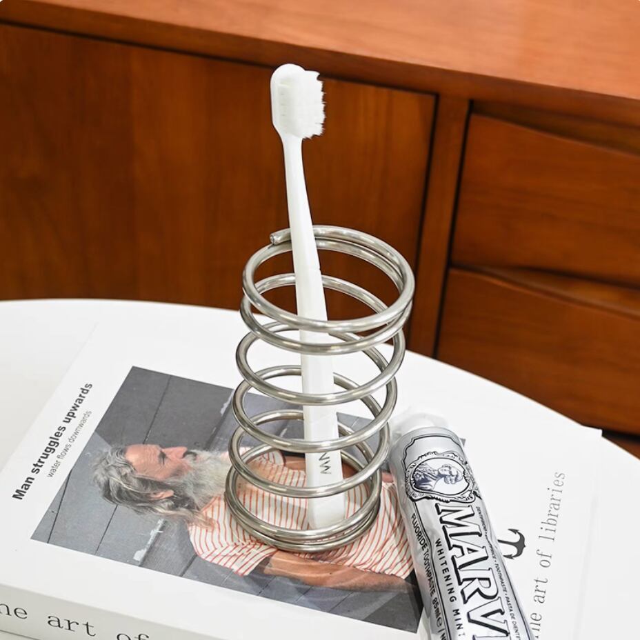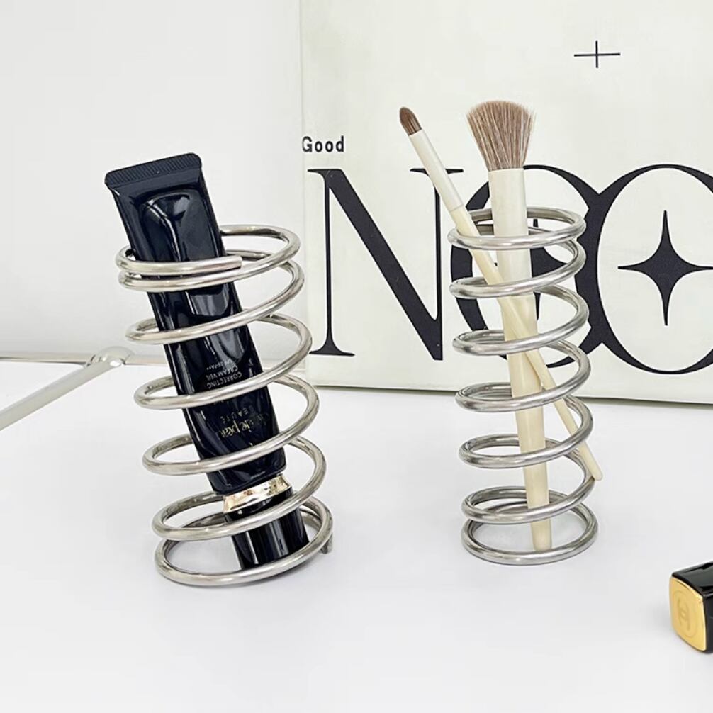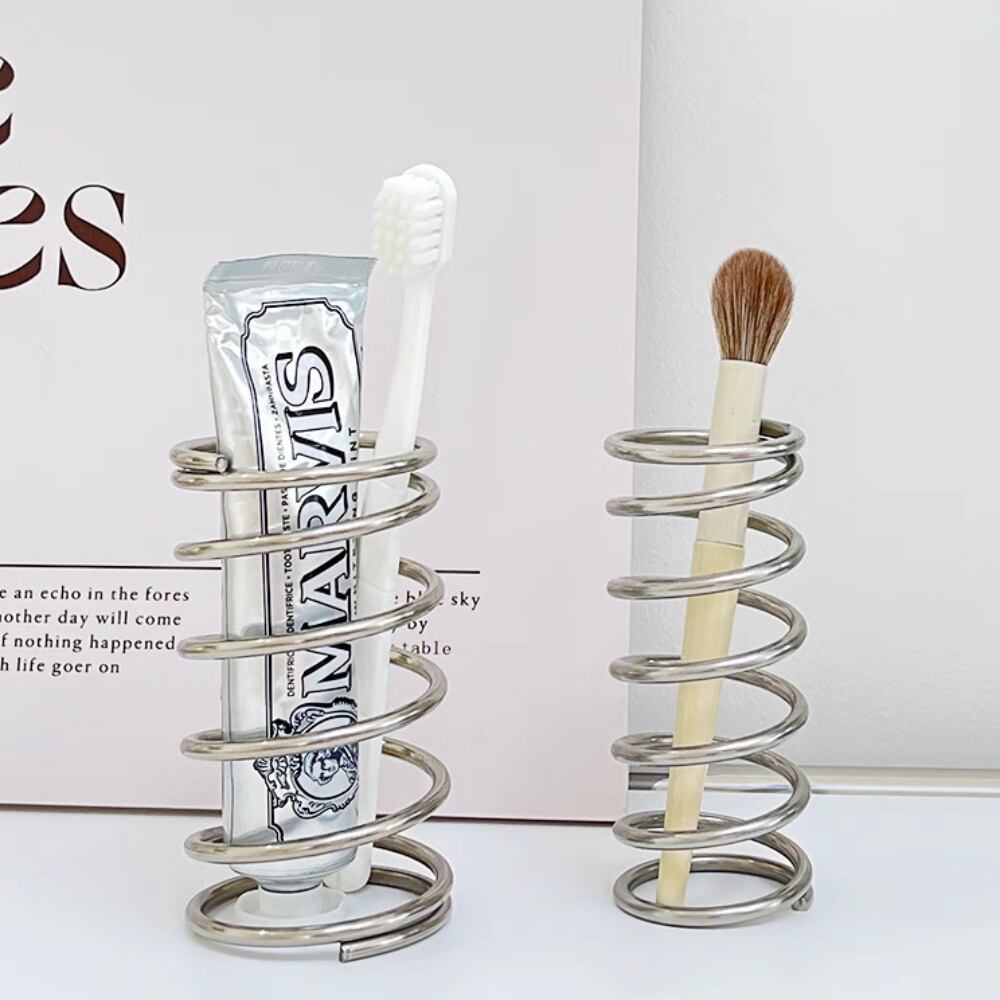 ○日々の生活に遊び心と美しさを添える、ステンレス素材のスパイラルホルダー。歯ブラシスタンドとしてだけでなく、メイクブラシ、ペン、チューブ型コスメの収納にもぴったりです。デスクや洗面台、ドレッサーの上に置くだけで、インテリア感がぐっとアップ。さっと手に取れる見せる収納で、毎日のルーティンをもっとスマートに。