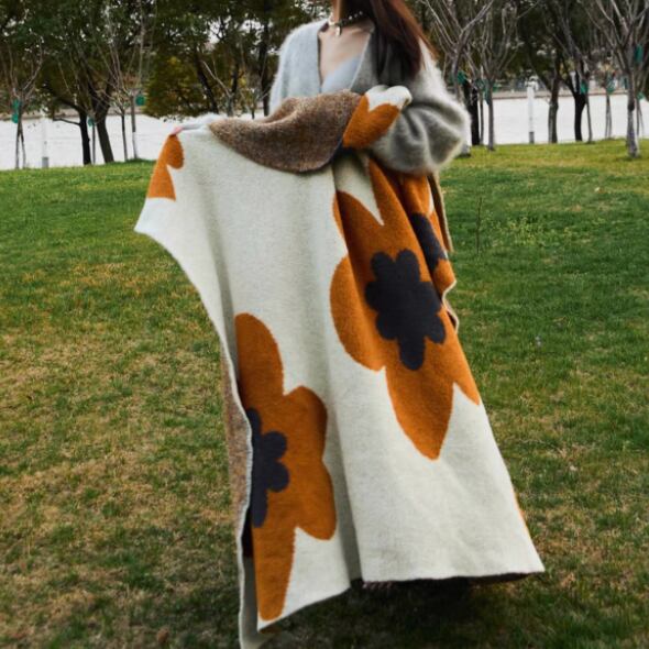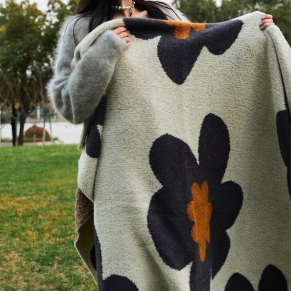 ○ふんわりした肌ざわりと、レトロな大きめフラワー柄が印象的なブランケット。シンプルなお部屋のアクセントになる大胆なデザインながら、落ち着いたカラーリングで韓国・北欧インテリアにもなじみます。ベッドやソファにさっと掛けるだけで、お部屋の雰囲気をぐっとおしゃれに演出してくれる一枚です。 ○サイズ:約150×120cm ○重さ:約850g ○カラー:ブラック/ブラウン ○素材:ポリエステル(片面フランネル生地) ○注意事項 ・製造及び素材の都合上、色やサイズに個体差が出る場合がございます。2~5cmほどの差が出る場合もございますのでご了承ください。 ・生地の特性上、少しの繊維まじりが起こる可能性がございます。返品交換対象にはなりませんのでご了承ください。 ・乾燥機を使用すると収縮する可能性がございます。 ・風合いを保つため、手洗いまたは弱水流でのお洗濯をおすすめします。