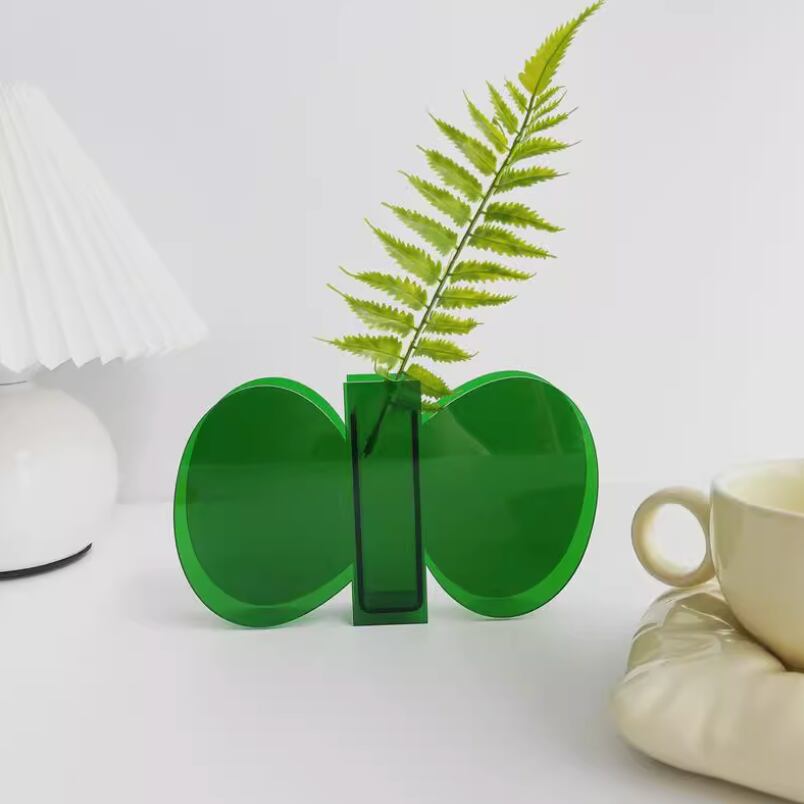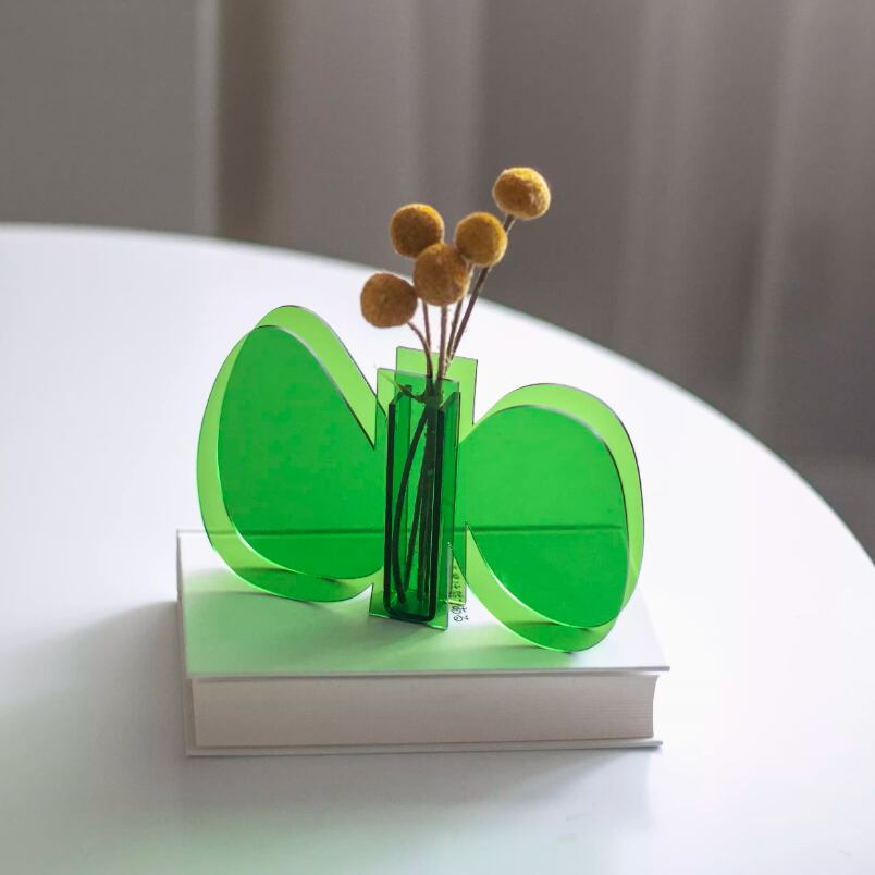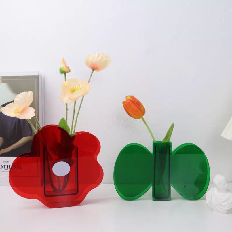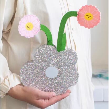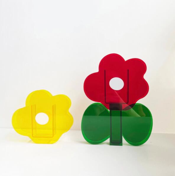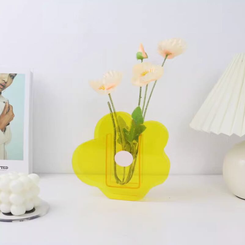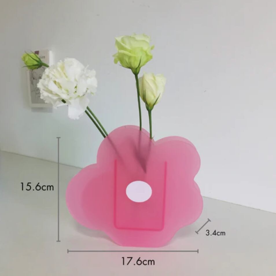 ○お花のかたちをした、見た目も気分も明るくなるポップなデザインのフラワーベース。透明感のあるアクリル素材やラメ入り仕様が、お部屋に抜け感とアクセントをプラスしてくれます。一輪挿しとしても、オブジェとしても使える自由なアイテム。韓国っぽインテリアやレトロポップなお部屋にぴったりです。 ○フラワー(レッド、イエロー、ピンク、ラメフラワー):長さ17.5cm × 高さ15.5cm × 厚さ3.5cm グリーンリーフ:長さ19.5cm × 高さ12.5cm × 厚さ2.5cm ○素材:アクリル樹脂