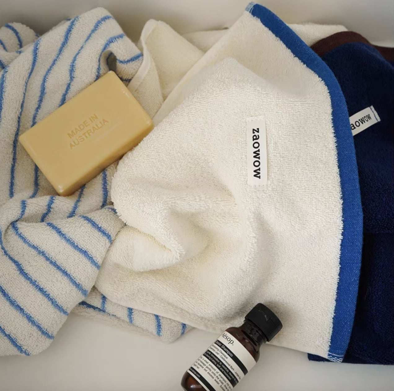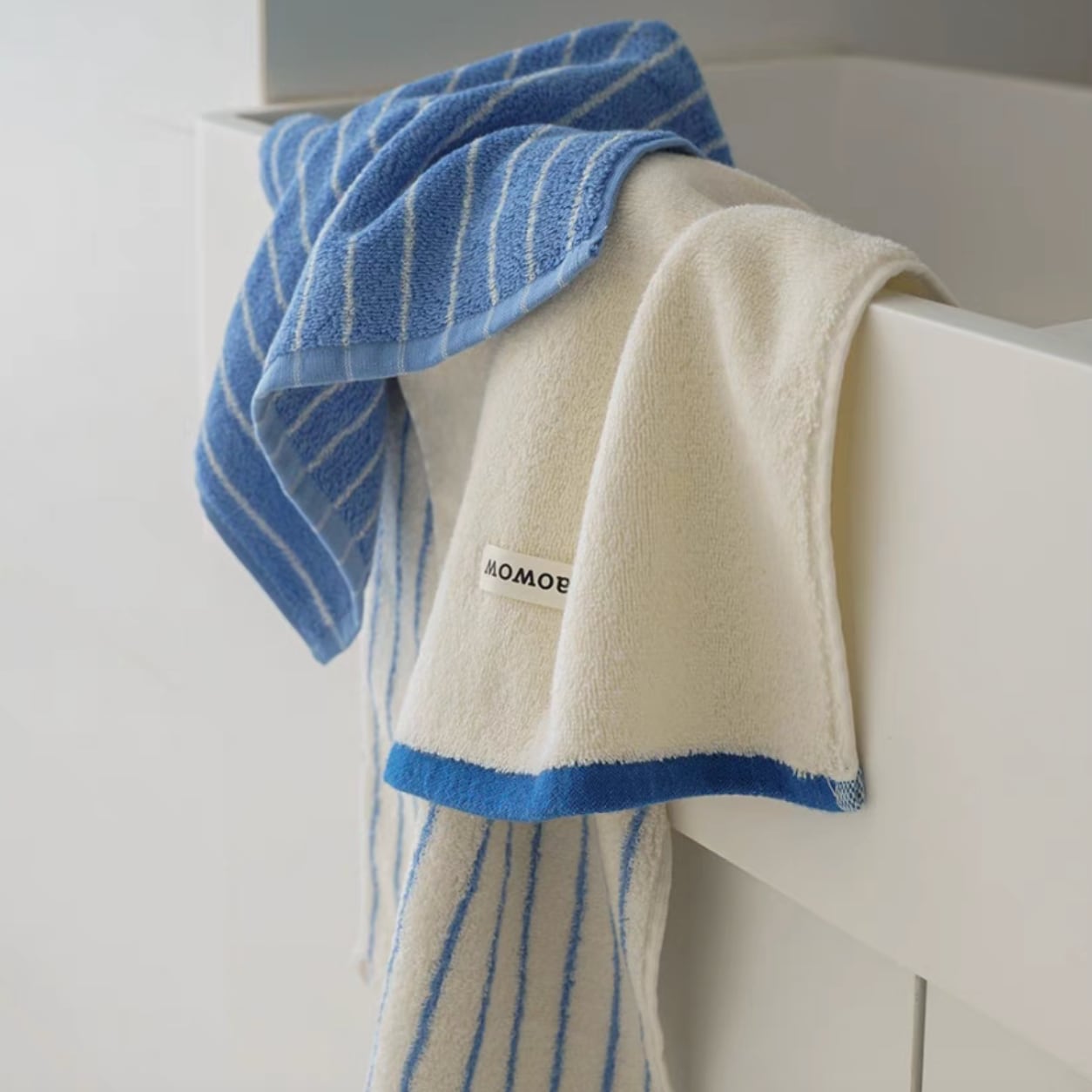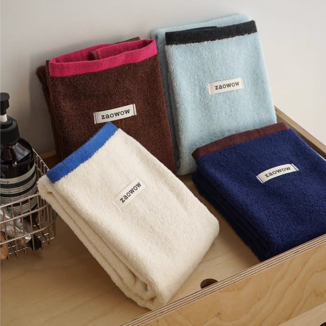 ○シンプルな中にも“抜け感”を感じさせる、バイカラーデザインのコットンタオル。使いやすさはもちろん、見た目のセンスも大事にしたい人にぴったりな1枚。洗面所やキッチン、リビングに出しっぱなしにしても“絵になる”デザイン。ゲストタオルとしても、インテリアの一部としても活躍してくれます。 ○One size(34×74cm) ○素材:コットン100% ○カラー:オフホワイト×ブルー / ブラウン×ローズ / ライトブルー×ブラック / ネイビー×ブラウン ○注意事項: ・初回〜2回の洗濯時に色落ち・毛羽落ちがある場合があります(素材特性) ・同系色のものと分けて洗ってください。塩素系漂白剤は使用しないでください ・洗濯機・手洗いともに30℃以下の水温で、やさしくお洗いください ・タンブラー乾燥は避け、陰干ししてください(アイロンは110℃以下) ・強く絞ったり、こすり洗いは毛羽の原因になりますので避けてください ・長時間のつけ置きや高温のお湯での洗濯は変色の原因になる場合があります