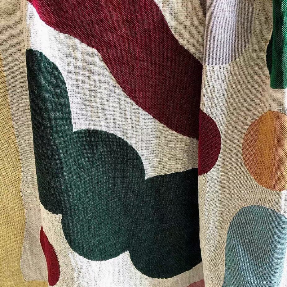 ○アートな色彩が目を引く、存在感たっぷりのコットンブランケット。大胆な筆致で描いたようなカラーパターンは、インテリアに一枚加えるだけで、まるでギャラリーのような空間に。ソファやベッドにラフに掛けたり、ラグ代わりに床に敷いたりと、気分に合わせて自由に楽しめます。コットンならではのさらりとした肌触りで、季節を問わず心地よく使える一枚です。