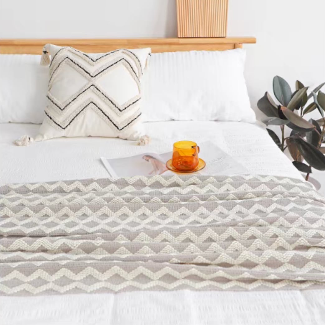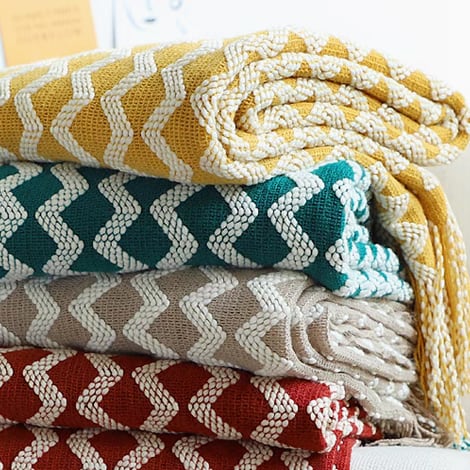 ○ジグザグ模様がアクセントになったコットンブランケット。やわらかな肌ざわりと軽やかな風合いで、リラックスタイムを心地よく演出します。ベッドやソファにラフにかけるだけで、ナチュラルかつ洗練された雰囲気に。シンプルながら存在感のあるデザインは、春夏はさらっと一枚で、秋冬は重ね使いでも活躍します。季節を問わず使える、暮らしに寄り添う一枚です。 ○One size(130×220cm ※フリンジ含む) ○素材:綿100%(肌ざわりの良いコットン生地) ○カラー:イエロー、グレー、レッド、グリーン ○注意事項: ・手作業での採寸のため、サイズに1~2cm程度の誤差が生じる場合があります ・開封直後はたたみジワが見られることがありますが、使用とともに自然に馴染みます ・洗濯は30℃以下の水温で、単独洗いまたは洗濯ネット使用を推奨します ・乾燥機は避け、平干し乾燥をおすすめします ・直射日光を避けて風通しの良い場所で乾燥してください ・生地の特性上、摩擦により多少毛羽立つことがあります