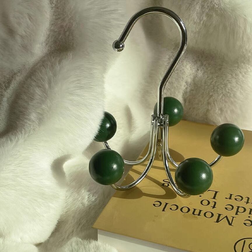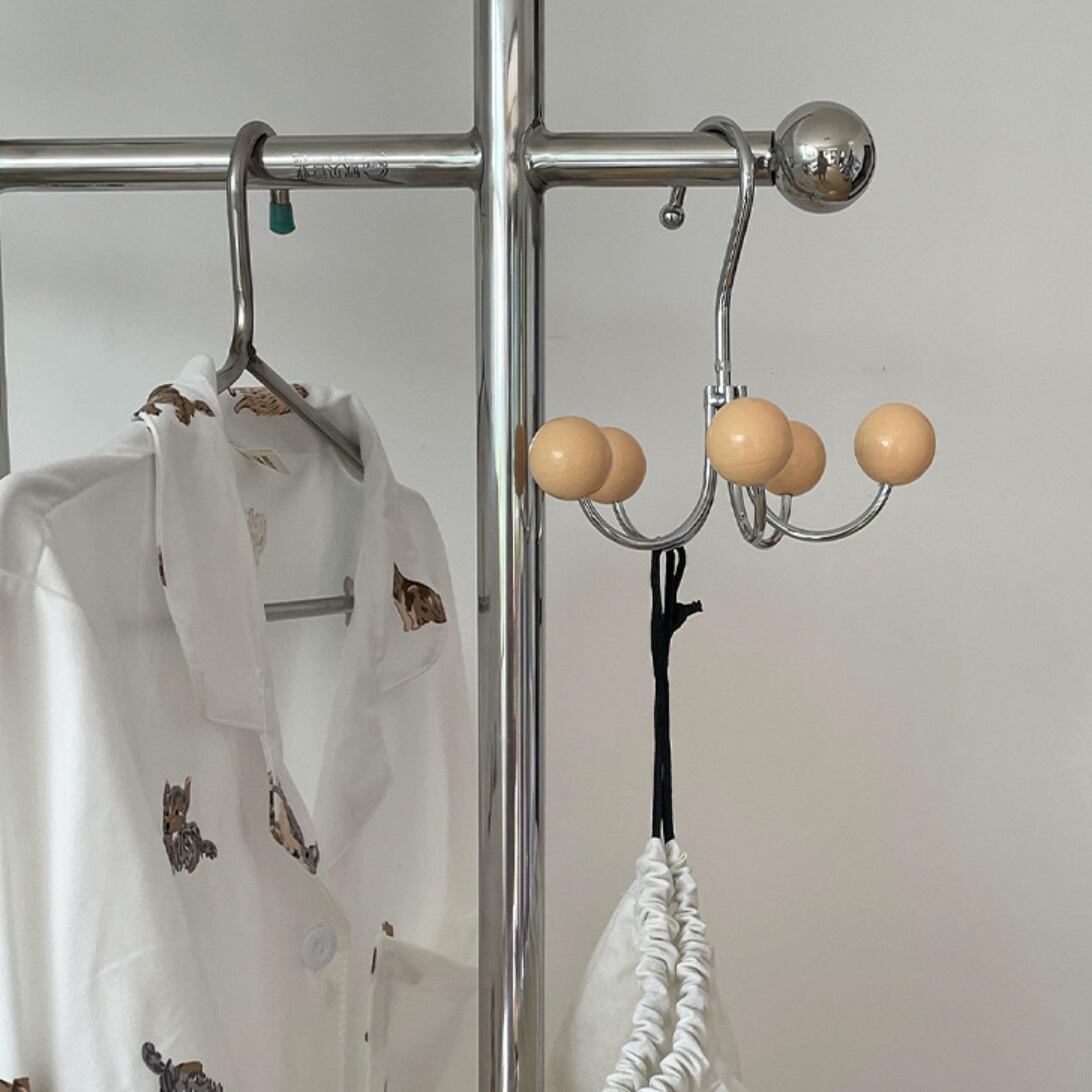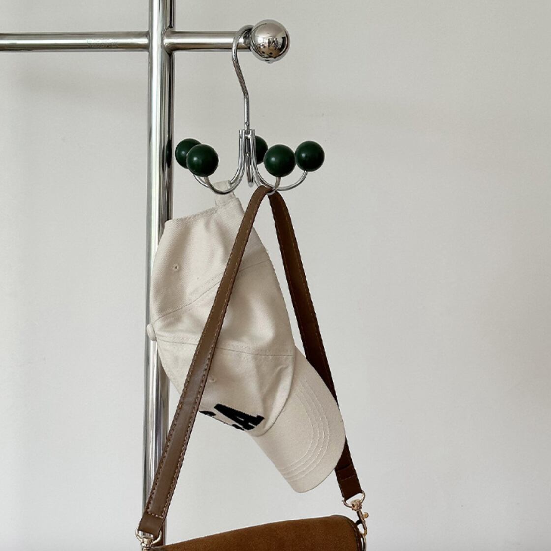 ○北欧ヴィンテージを思わせる、ウッドボールデザインの回転式ハンガー。 5本のフックがくるくる回転するので、帽子やバッグ、アクセサリーなどをまとめて引っ掛けても取り出しやすく、インテリア感覚で収納を楽しめます。 小ぶりながら存在感があり、置くだけで空間に遊び心と温かみをプラス。 玄関やベッドルーム、クローゼットのアクセントにもおすすめです。 ○One size(15×14.5cm) ○素材:ウッド、アイアン ○カラー: ・ナチュラル ・ブラック ・グリーン ・レッド ○注意事項: ・手作業での製造のため、サイズに多少の誤差や木目・色味の個体差があります ・無理な力を加えたり、重いものをかけすぎると破損の原因になりますのでご注意ください ・湿気の多い場所や直射日光の当たる場所での長時間使用は避けてください ・フックは滑らかな回転式ですが、使用により若干の個体差が生じる場合があります