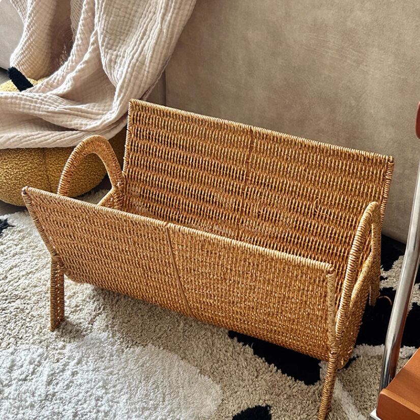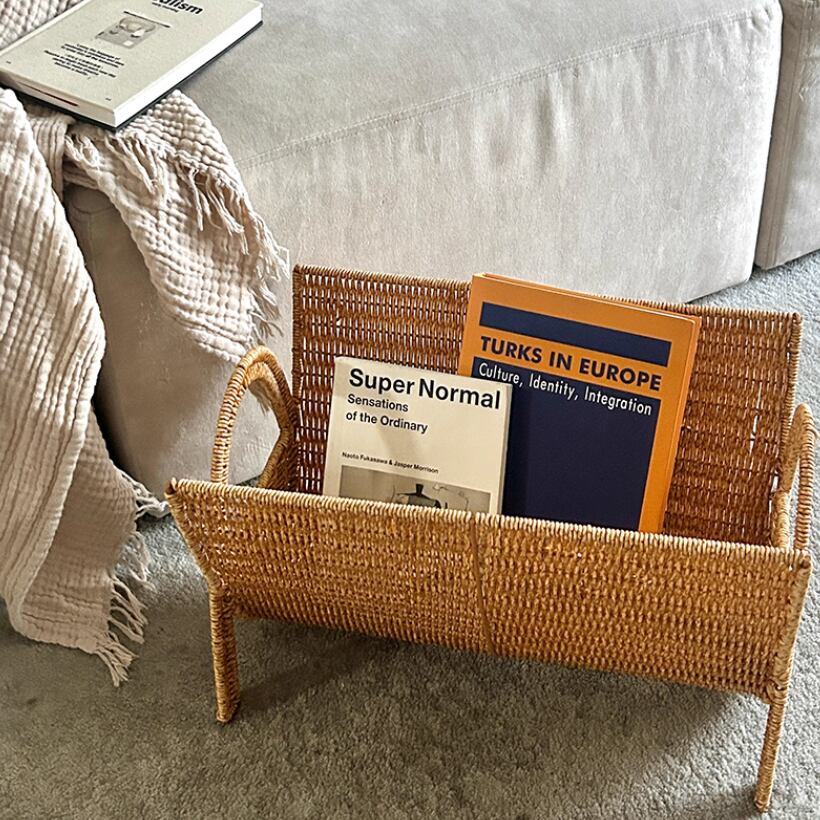○お気に入りの雑誌やパンフレットをすっきりまとめてくれる、ナチュラルなラタン風のマガジンラック。
