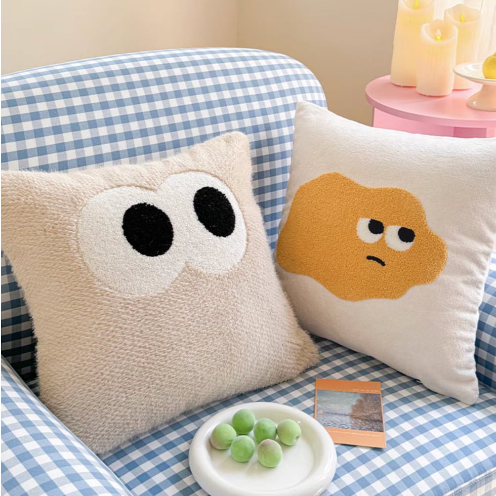 ○ちょっと不機嫌そうな表情が愛らしいクッションカバー。くったりとした手ざわりが心地よく、リラックス空間づくりにぴったりです。ベースはニュアンスカラーでまとめ、キャラクターものでも子供っぽくなりすぎず、大人のお部屋にも取り入れやすいデザインに仕上げました。おうち時間をほっこり癒してくれる、存在感たっぷりのアイテムです。