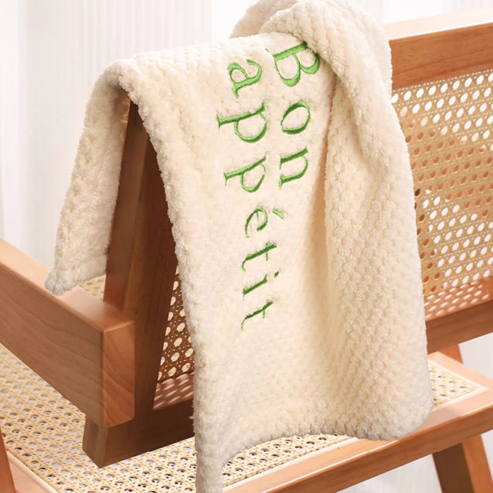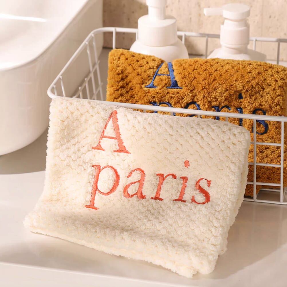 ○ふわっとやさしく手肌を包み込む、刺繍入りのコーラルベルベットタオル。しっとり柔らかな肌ざわりで、手洗いのたびに気持ちがほぐれるような1枚です。キッチンや洗面所にさりげなく掛けておくだけで、空間がほんの少し、あたたかく整います。手を拭くのが楽しみになるような、カラフルな刺繍ロゴ入り。 ○One size(約50×30cm) ○素材:ポリエステル85%、綿15% ○カラー:A Paris(ホワイト)/Merci/Bon Appétit/A Paris(ブラウン) ○注意事項: ・洗濯機使用可(中性洗剤・低温水での手洗い/ネット使用推奨) ・柔軟剤・漂白剤は使用しないでください ・直射日光を避けて陰干ししてください ・手作業での採寸のため、サイズに多少の誤差があります(±1〜2cm)