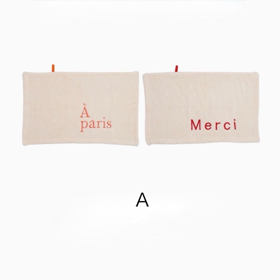○ふわっとやさしく手肌を包み込む、刺繍入りのコーラルベルベットタオル。しっとり柔らかな肌ざわりで、手洗いのたびに気持ちがほぐれるような1枚です。キッチンや洗面所にさりげなく掛けておくだけで、空間がほんの少し、あたたかく整います。手を拭くのが楽しみになるような、カラフルな刺繍ロゴ入り。お得な2枚セットです。 ○One size(約50×30cm) ○素材:ポリエステル85%、綿15% ○カラー:A Paris(ホワイト)/Merci/Bon Appétit/A Paris(ブラウン) ※セット組は画像をご参照ください。 ○注意事項: ・洗濯機使用可(中性洗剤・低温水での手洗い/ネット使用推奨) ・柔軟剤・漂白剤は使用しないでください ・直射日光を避けて陰干ししてください ・手作業での採寸のため、サイズに多少の誤差があります(±1〜2cm)