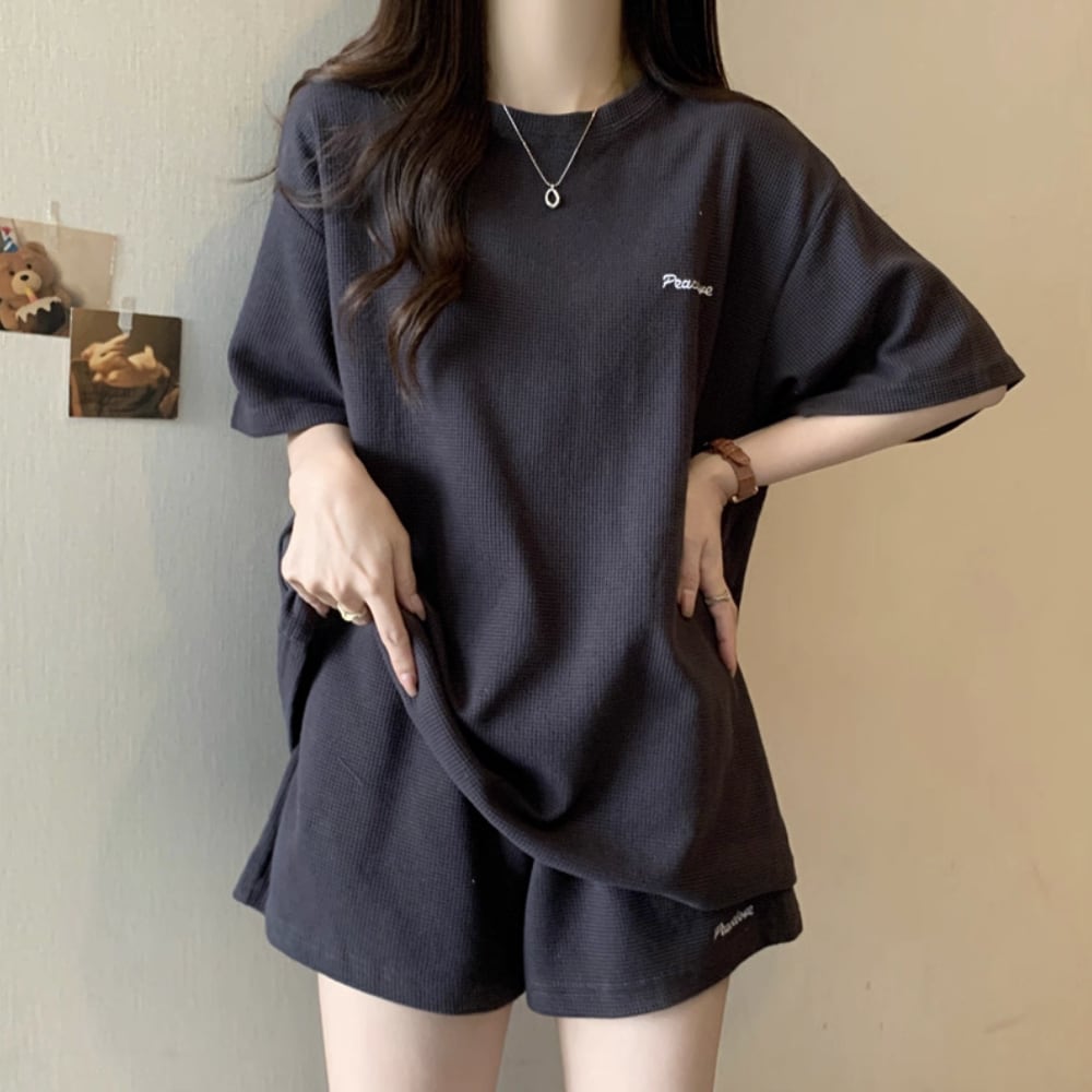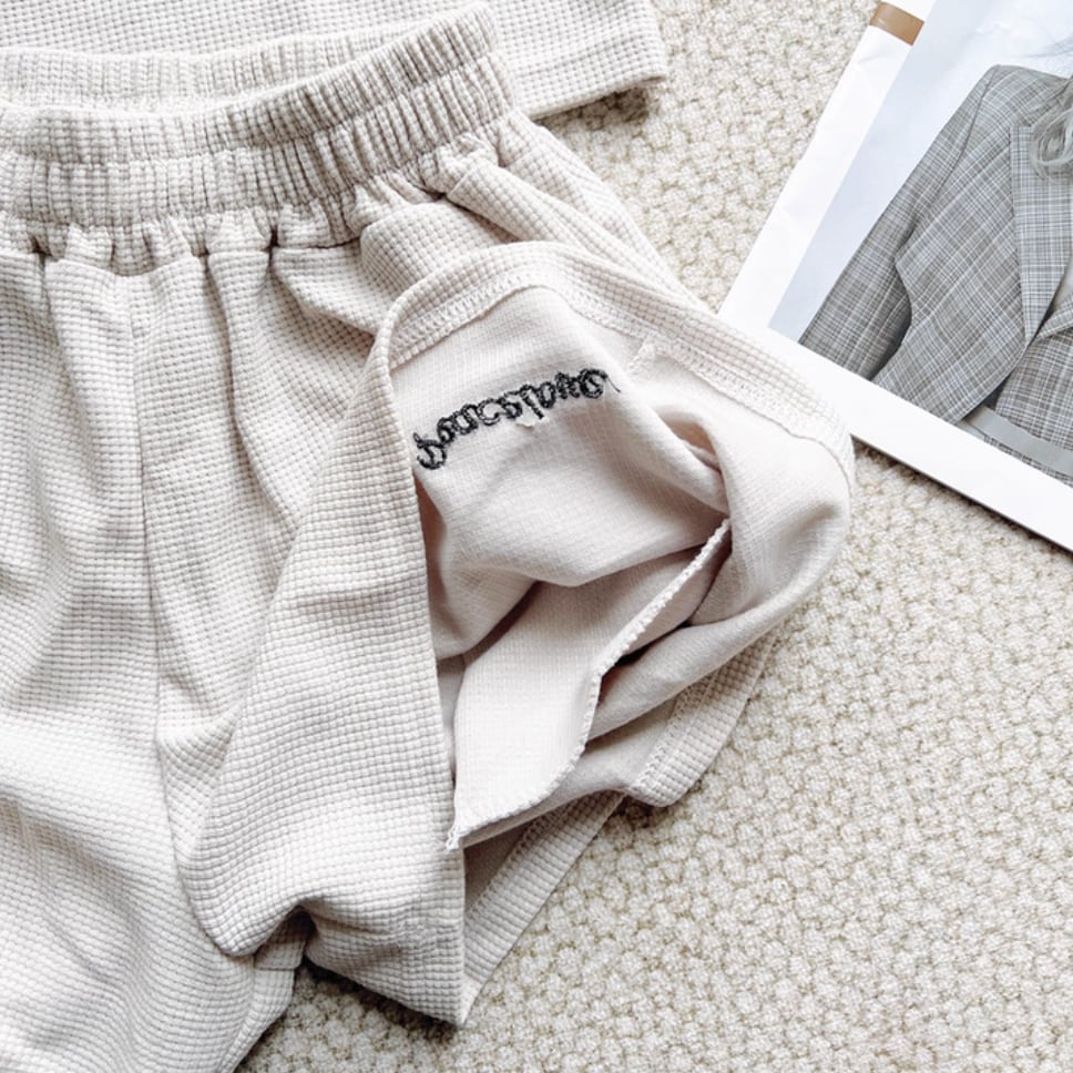 ○くつろぎの時間にぴったりな、肌あたりやわらかなワッフル素材のルームウェアセット。凹凸感のある編み地が通気性を保ちながら、程よい厚みで身体をやさしく包み込んでくれます。トップスはゆったりめのシルエットで動きやすく、ショートパンツは柔らかなウエストゴムでストレスフリー。おうち時間はもちろん、ワンマイルウェアとしても活躍してくれる一着です。 ○サイズ(平置き実寸/cm) M:着丈63/胸囲108/袖丈19/パンツ丈32 L:着丈65/胸囲112/袖丈20/パンツ丈33 XL:着丈67/胸囲116/袖丈21/パンツ丈34 2XL:着丈69/胸囲120/袖丈22/パンツ丈35 ※全サイズウエストは総ゴム仕様(伸縮性あり) ※身長155〜165cmの方はL〜XLが目安です(ゆるめに着たい方はワンサイズ上もおすすめ) ○素材:ポリエステル65% 綿30% ポリウレタン(スパン)5% ○カラー:ダークグレー ○注意事項: ・洗濯機使用可(ネット使用・弱水流) ・漂白剤や乾燥機の使用は避けてください ・光の加減やモニター環境により実物と色味が異なる場合があります ・手作業での採寸のため、サイズに1〜3cmほどの誤差がある場合があります