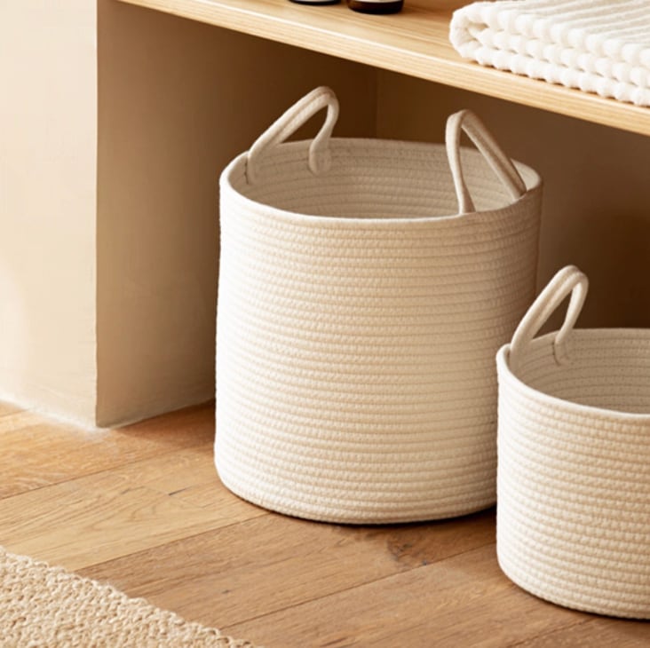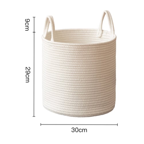 ○リビングやベッドサイドに自然と溶け込む、ナチュラルな風合いのコットンバスケット。厚手のコットンロープを丁寧に編み上げ、ふんわりとした手触りとしっかりとした形状を両立。中身が見えにくい程よい高さで、タオルや小物をざっくり収納しても生活感が出にくいのが嬉しいポイント。持ち手付きで、洗面所や寝室、子ども部屋の整理にもぴったりです。