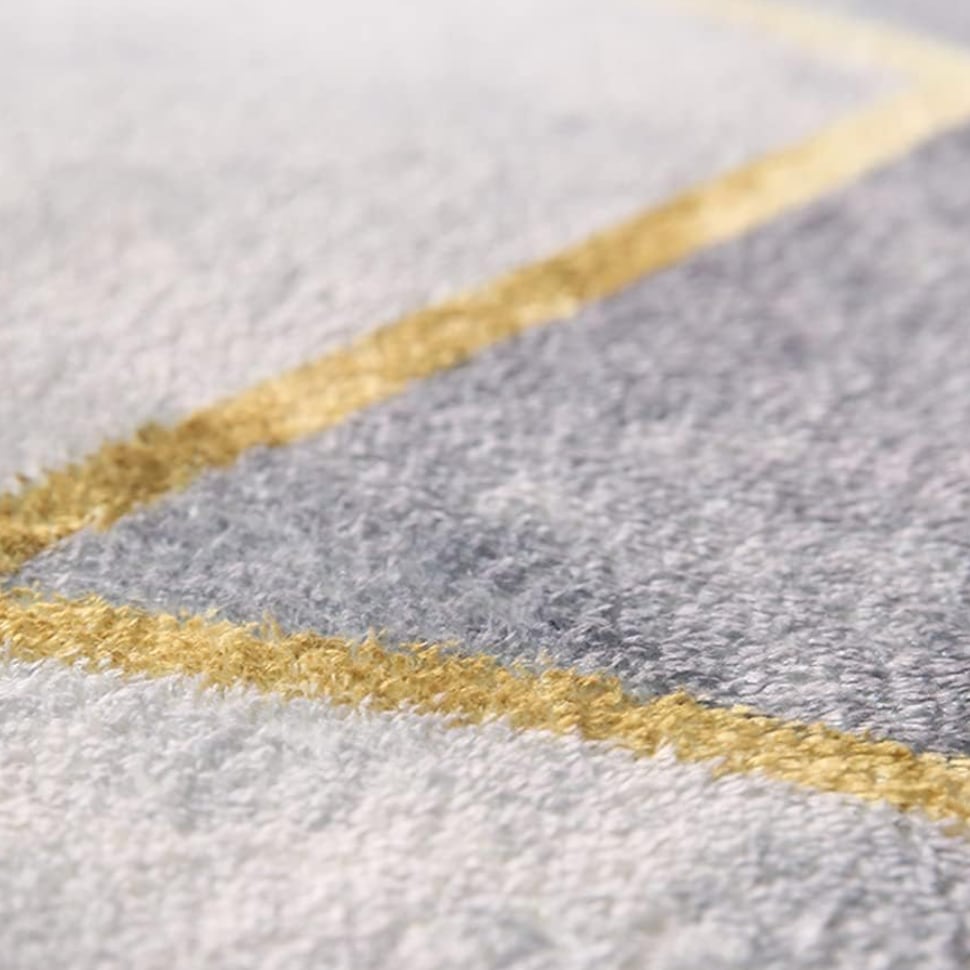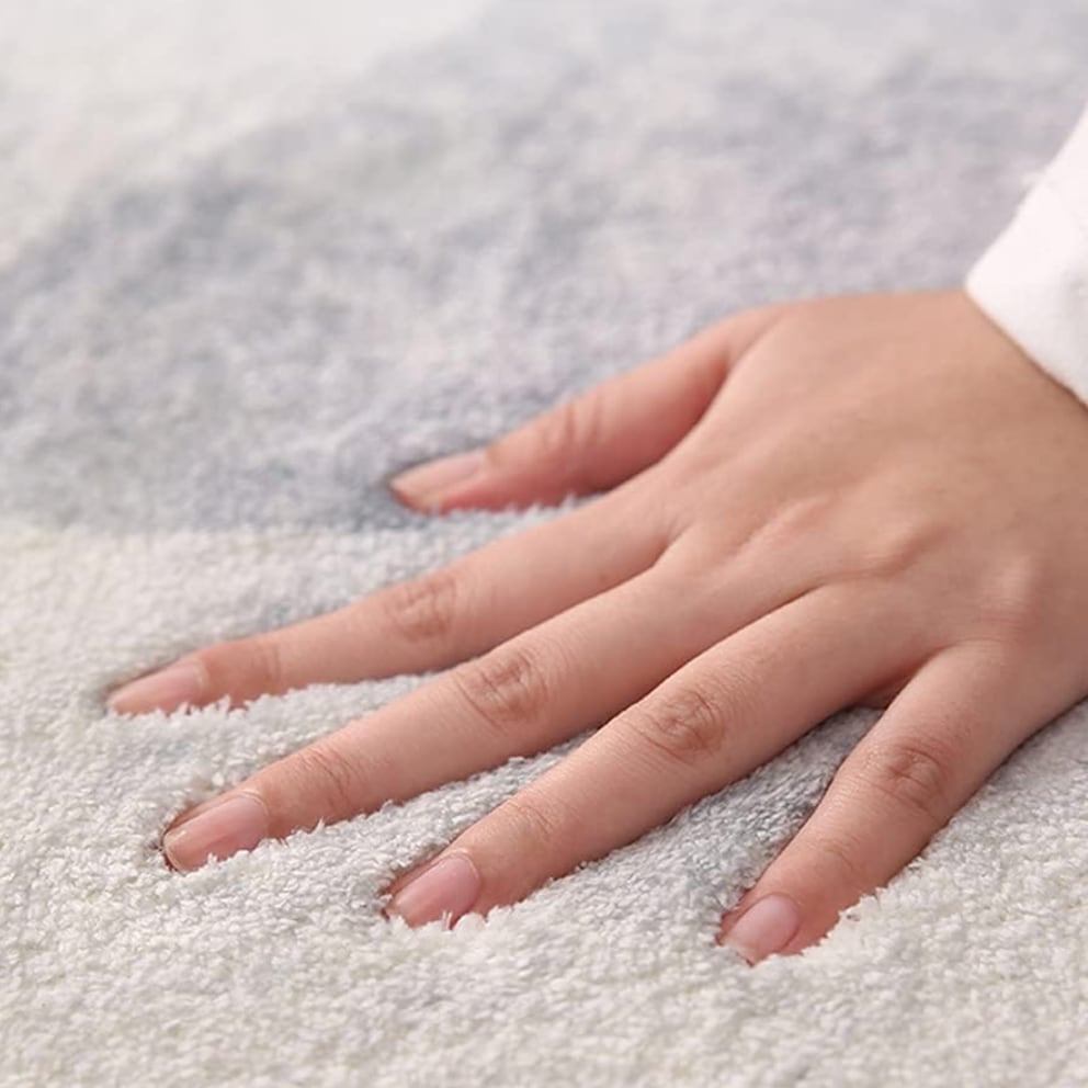 ○シンプルな幾何柄にゴールドラインがアクセントを添える、空間映えするラウンドラグ。ホワイト・ベージュ・ブルーを基調とした優しい色合いは、お部屋に上品さと明るさをプラスしてくれます。ラウンド型はインテリアに柔らかさを生み、ソファ前やチェア下などにぴったり。ふんわりとした毛足で足元を優しく包み込み、実用性とデザイン性を兼ね備えた一枚です。