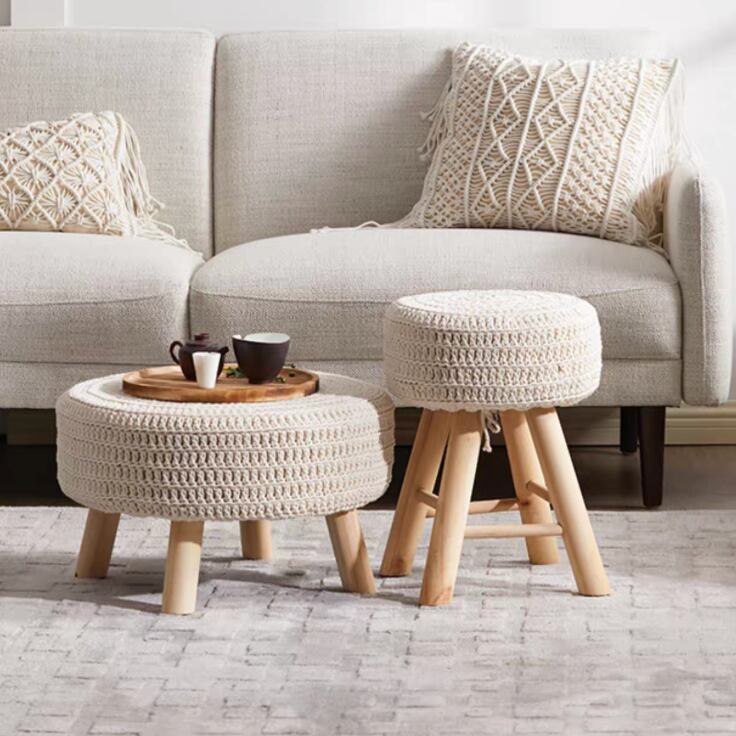 コットンニットのラウンドスツール(ラージ)[pl086]