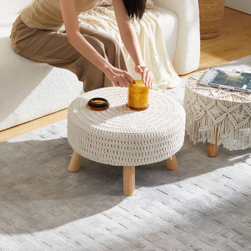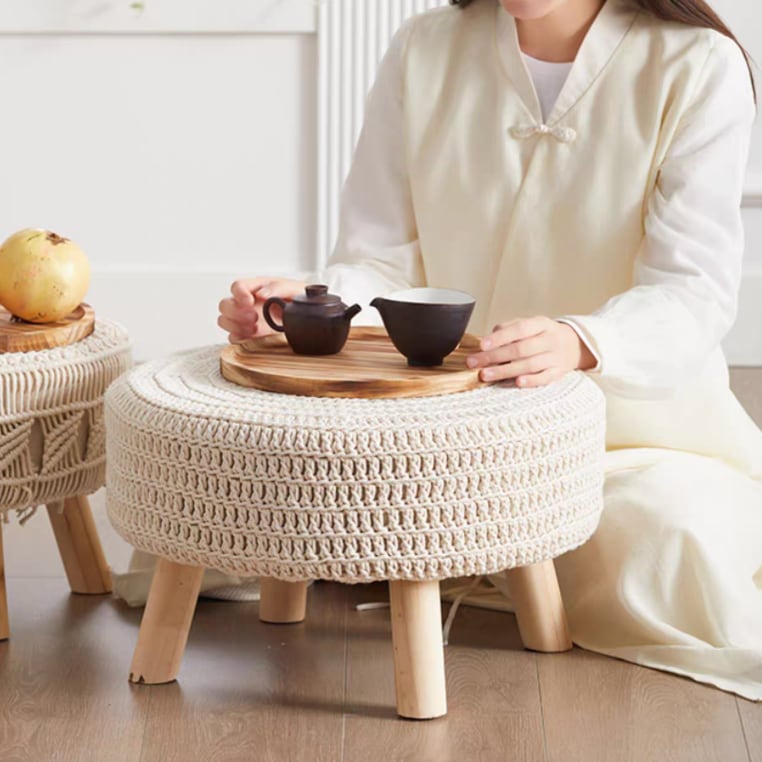 ○素材:表面/綿(手編み風ニット)、内部/高密度ウレタン、脚/木