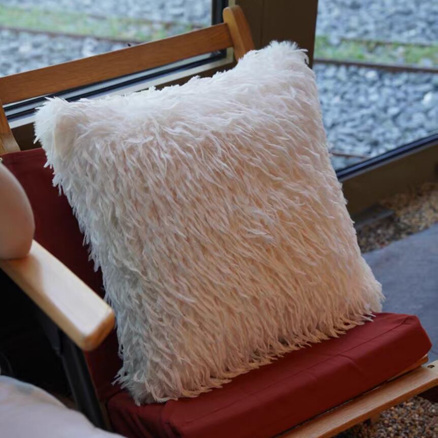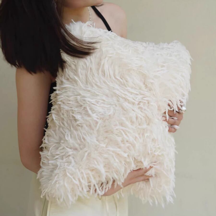 ○ふわふわの毛足が心地よく、抱きしめたくなるようなやさしい肌ざわりのクッションカバー。
