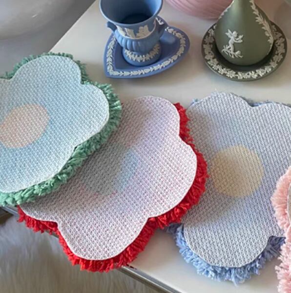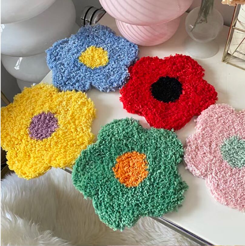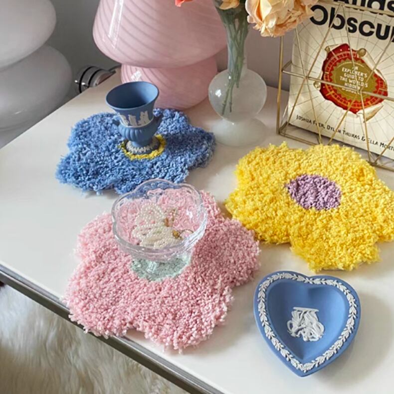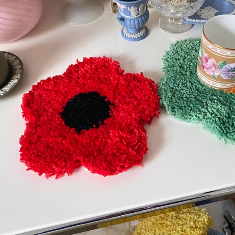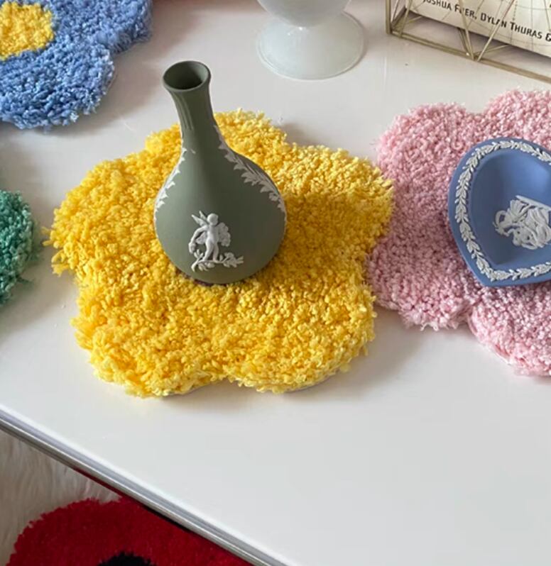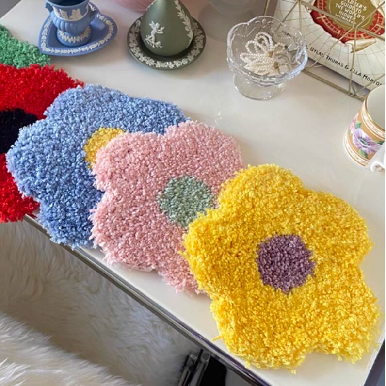 ○日常の小さな時間にも、心がふわっとほどけるようなやさしさを。ふんわりとした毛足がかわいい花型コースターは、カップを置くたびにやさしい気分になれるアイテムです。ほんのり立体感のあるシルエットがテーブルに彩りを加えてくれて、朝食のパン皿の下やキャンドルのマットとしても活躍してくれます。カラフルなのにお部屋に馴染みやすく、いくつか並べても重くなりません。 ○One size(約20×20cm、厚み約1〜2cm) ○素材:表面:ポリエステル 裏面:TPR滑り止め加工付き ○カラー:イエロー×パープル/グリーン×オレンジ/ピンク×ミント/ブルー×イエロー/レッド×ブラック ○注意事項: ・洗濯は40℃以下のぬるま湯で手洗い、またはネット使用の弱洗濯を推奨します ・吸湿性により多少の糸くずが出ることがありますが、ご使用には問題ありません ・火気のそばでの使用は避けてください ・1点1点手作業で製造されているため、サイズに若干の誤差があります(±1〜2cm) ・花びらの間の窪みを大きくしたい場合、余っている裏地の縁をカットして形を整えることが可能です。