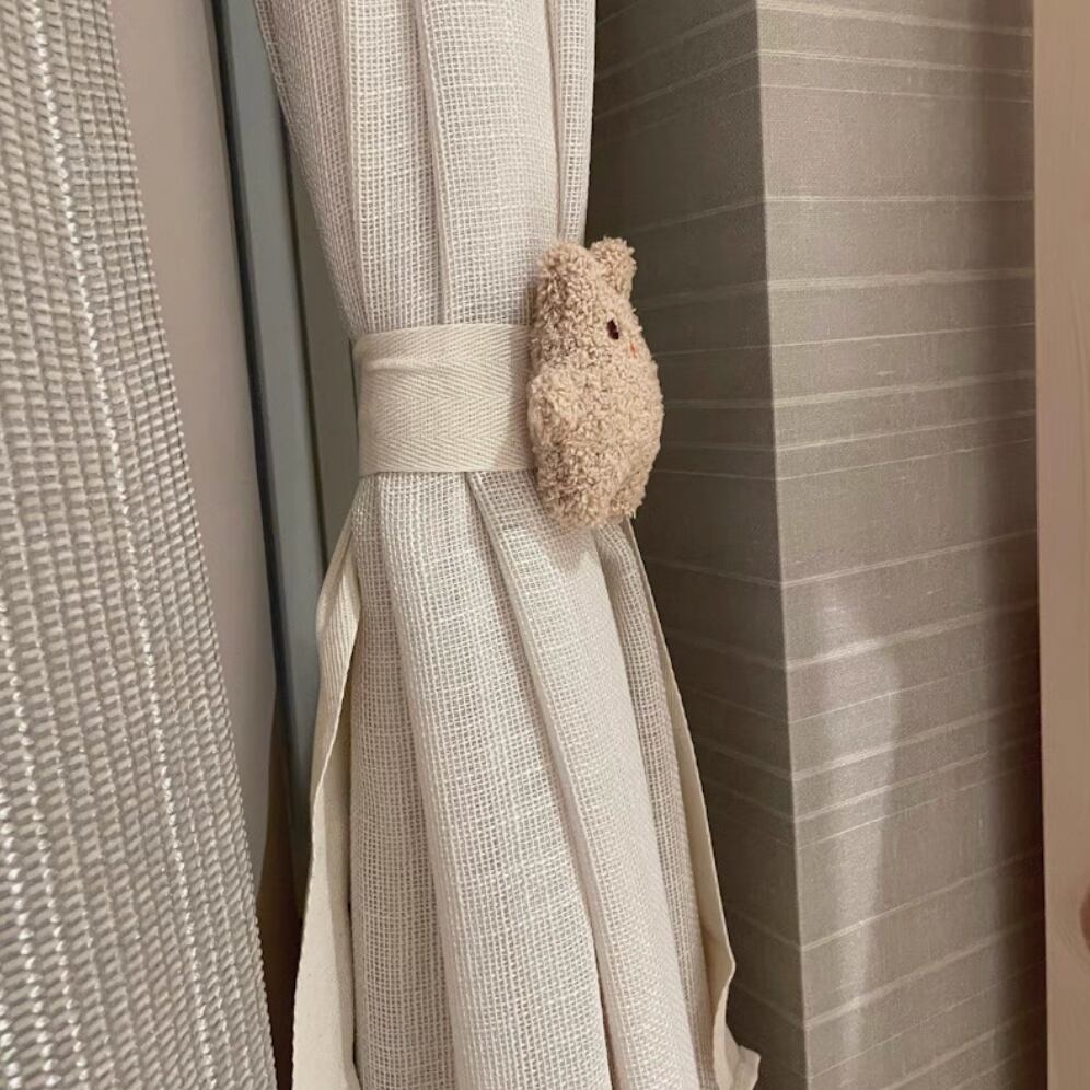 ○やわらかな日差しの中で、ふと視線を向けると、ちょこんと佇む小さなうさぎの姿。ぬいぐるみのようなふわふわ感が愛らしいカーテンホルダーは、お部屋にやさしい存在感を添えてくれるアイテムです。結ぶだけで取り付けられるシンプルな仕様ながら、ちょっとした遊び心が空間をあたたかくしてくれます。ナチュラルカラーなので、どんなカーテンにもなじみやすいのも嬉しいポイント。 ○One size(全長 約80cm ※うさぎ部分含む) ○素材:うさぎ部分:ポリエステル(刺繍入り)/リボン部分:コットン ○カラー:ベージュ/ピンク/ホワイト ○注意事項: ・うさぎ部分は熱接着による固定のため、高温での洗濯や乾燥機の使用はお避けください ・黒い点のように見える箇所は、素材由来の綿カスです。品質に問題はありません ・接着の個体差により、うさぎの顔の向きや表情に若干の違いがある場合があります ・手作業による製造のため、サイズには多少の誤差が生じる場合があります