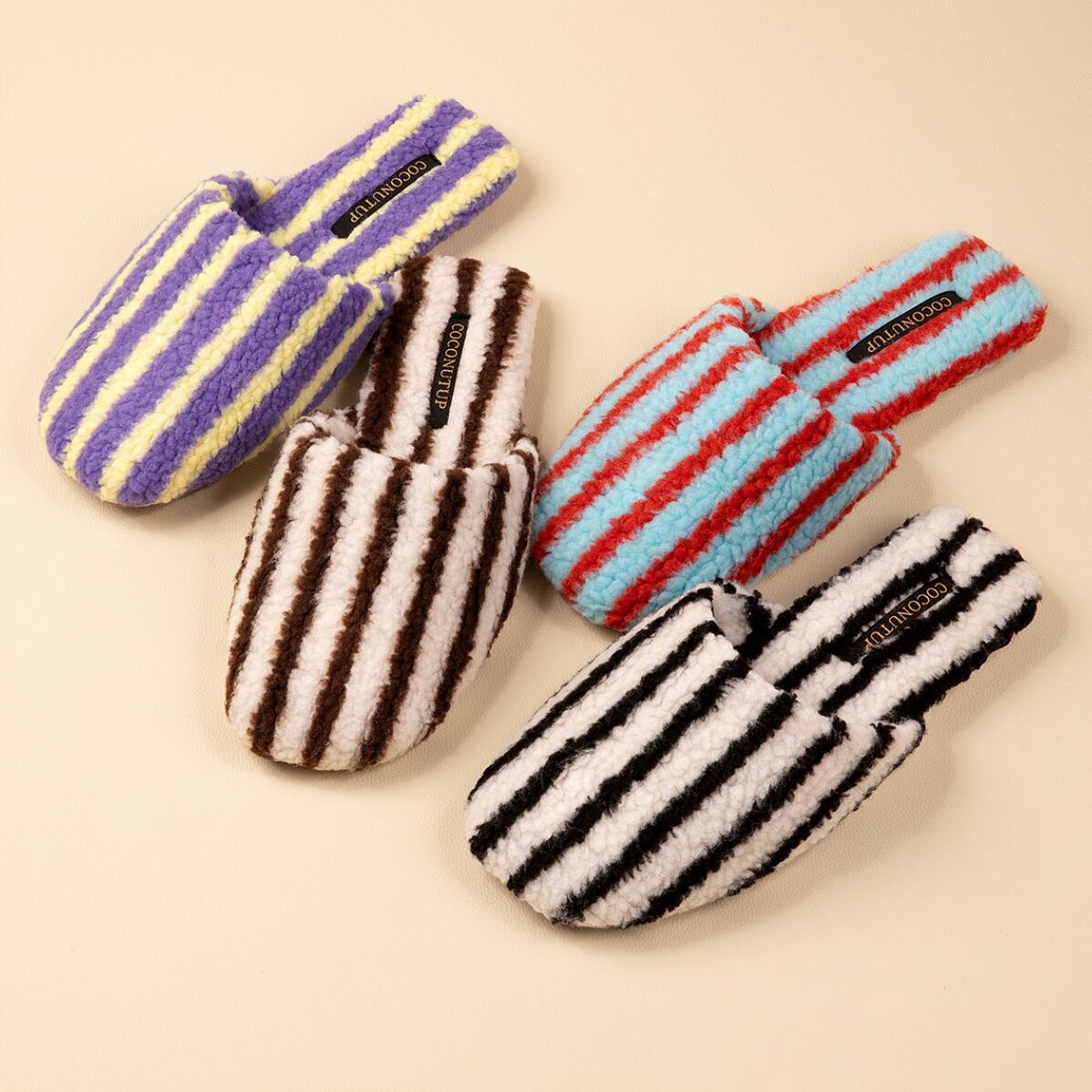 ○ふわふわの厚手素材とストライプ柄が目を引く、冬に向けたあったかルームスリッパ。 やわらかなマイクロフリース風生地が足をやさしく包み込み、つま先までぬくもりをキープ。 裏面は滑りにくく、長時間履いても疲れにくい軽さが魅力です。 ポップでレトロな色合いも、部屋の雰囲気を明るくしてくれます。 ○サイズ:S・M・L展開 S:22.5〜23.5cm(36–37) M:23.5〜24.5cm(38–39) L:24.5〜25.5cm(40–41) ○素材:表面:ポリエステル 底面:TPR(滑り止め仕様) ○カラー:ブラックストライプ/ブラウンストライプ/ブルーストライプ/パープルストライプ ○注意事項: ・やや小さめの作りのため、幅広の方はワンサイズ上がおすすめです ・手作業での採寸のため、サイズに多少の誤差があります ・使用や洗濯により多少の毛羽立ちが生じる場合があります ・モニターや照明の環境により、実際の色味と異なって見える場合があります